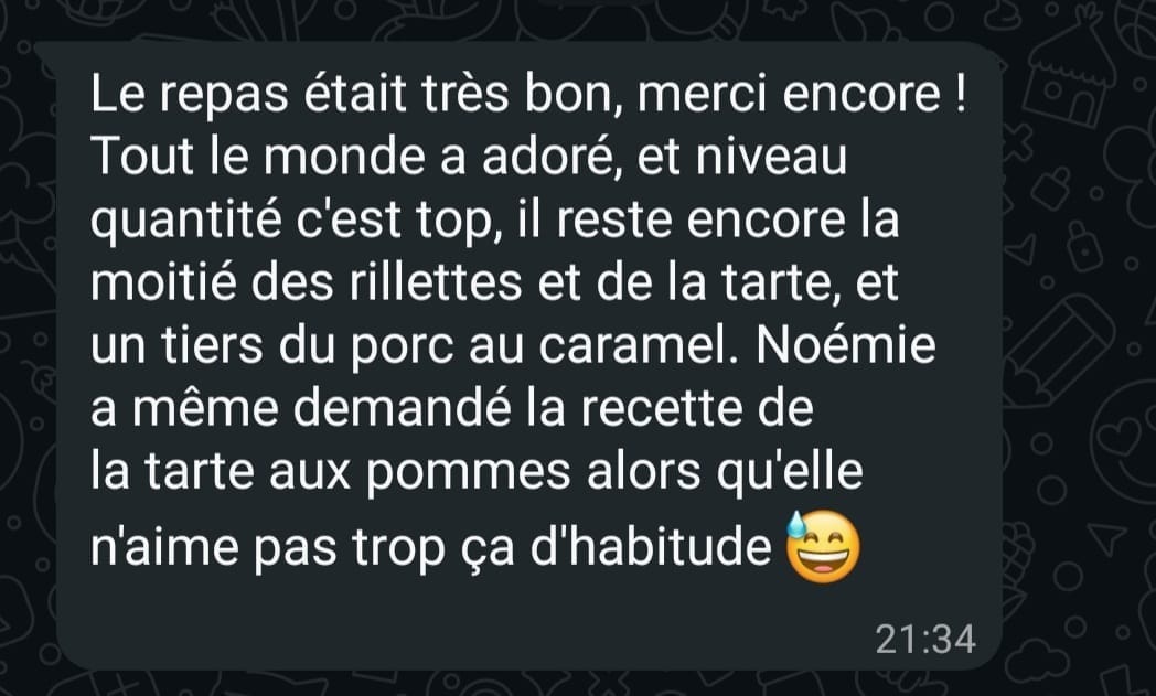 Vous profitez de votre famille sans vous demander " Qu'est ce qu'on mange ce soir ? ".