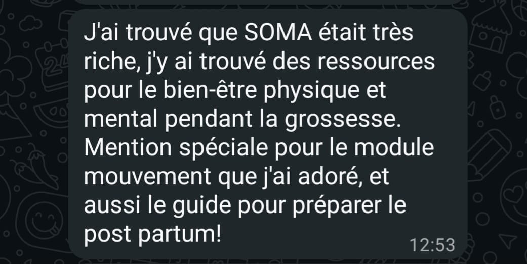 Pendant le programme, tu auras accès au groupe WhatsApp " La ronde " pour échanger avec moi et les futures mamans de SOMA.