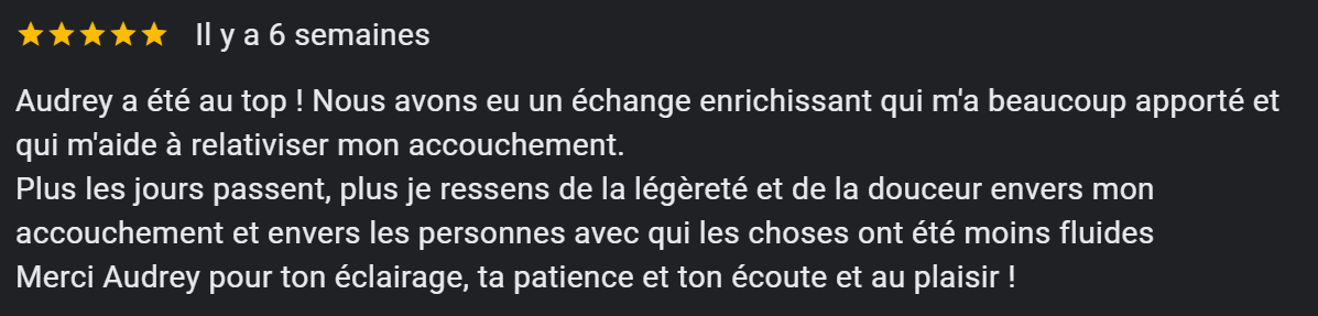 Au plaisir de t'accompagner dans l'aventure de la maternité.